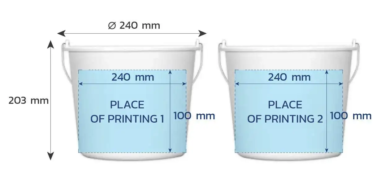 On the outer surface, we offer the option of applying a durable screen print in PANTONE colors. This allows each bucket to become a promotional item with a logo or advertising slogan, serving as an effective advertising medium. The print is resistant to abrasion and chemicals, ensuring its long-lasting durability.