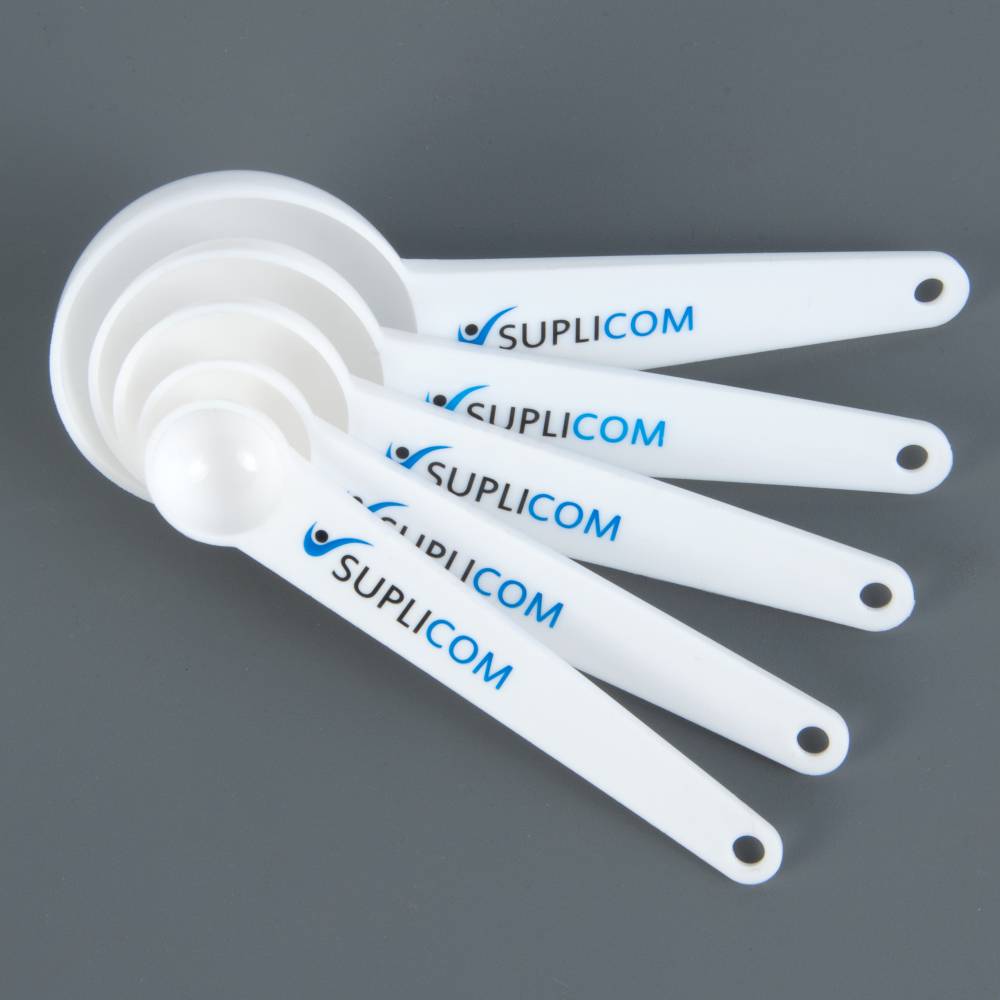 Measuring spoon PIKO 5 ml, white, made of high-quality polypropylene. The small plastic spoon is certified for contact with food and is manufactured in Poland by company Bott. The spoon can be used not only in the food industry as a spoon for dietary supplements, but also as a small measure for measuring spices, nutrition for sportsmen or vitamins. The small spoon can be used to measure both liquid and powder products. According the customer’s wish there can be printed the individual logo on the handle of the plastic measuring spoon.